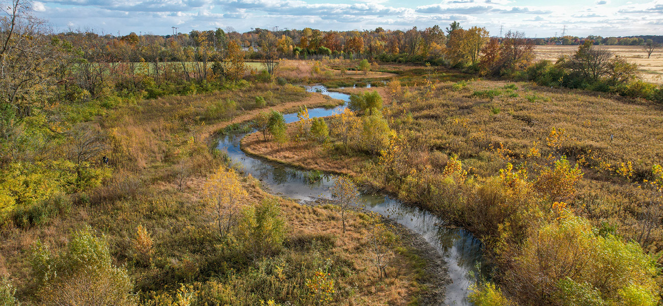 Most recently, development of The Well, Hilliard’s Recreation & Wellness Center, provided the opportunity to restore large sections of the Clover Groff, which flows through the property. As part of this work, the stream’s floodplain area was widened, more natural plants were added, and the stream channel now follows a serpentine path to slow down water runoff and reduce soil erosion.
